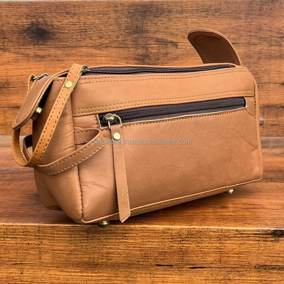Custom 100% Genuine Leather Double-Zipper Men & Women Travel Makeup Bags High Quality Toiletry Cosmetic Bags Hanging Dopp Kits