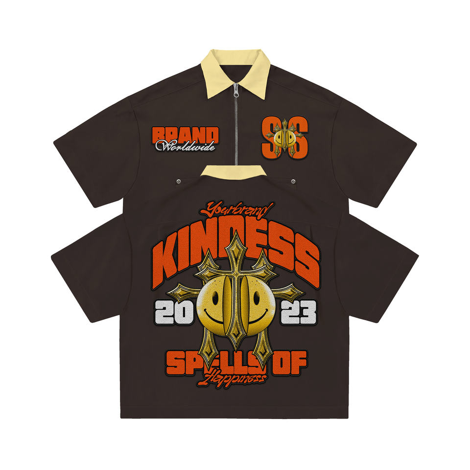 Custom 100% High Quality Screen Print Crop Top Boxy Cotton Streetwear Vintage Zipper up Men Casual Polo T-shirt