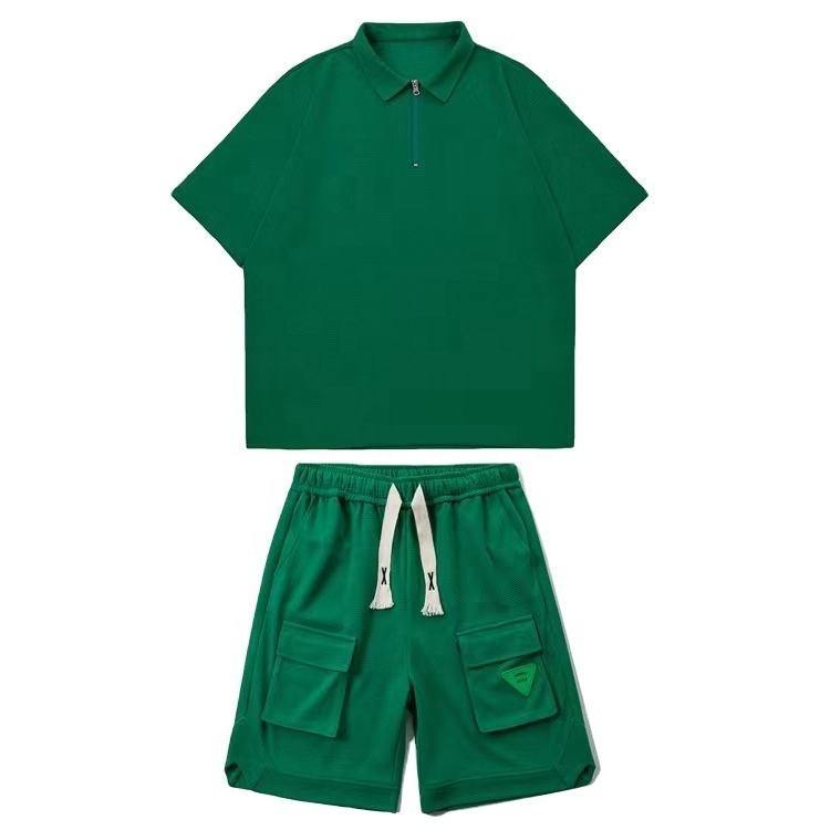 Custom 100% Polyester Men's Casual Shorts Sets Hooded Short Sleeve Polo Shirt & Solid Wash Tracksuit 2-Piece Set for Winter