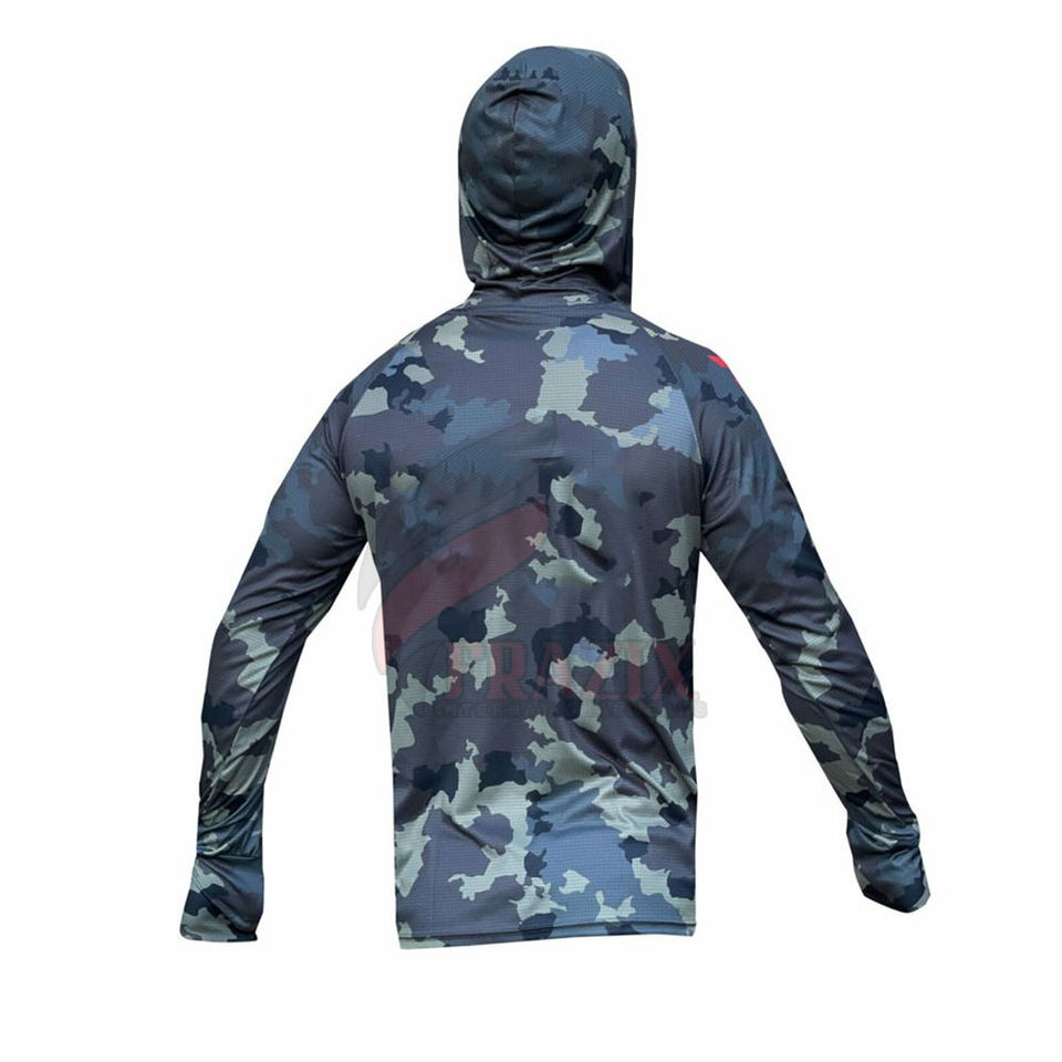 Custom 100% Polyester UV UPF50 Moisture Wicking Waterproof Breathable Men's Hoody Long Sleeve Fishing T Shirts with Mask