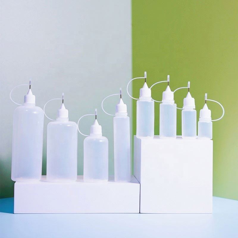 Custom 100ml PE Plastic Empty Dropper Bottle with Needle Tip Applicator Squeeze Glue Bottle and Twist Caps