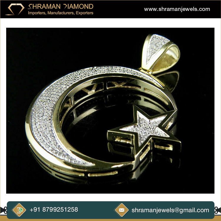 Custom 10K Solid Gold Fine Pendants Charms Moissanite Diamond iced Bling Allah Moon Star Hip Hop Style Islamic Muslim Religious
