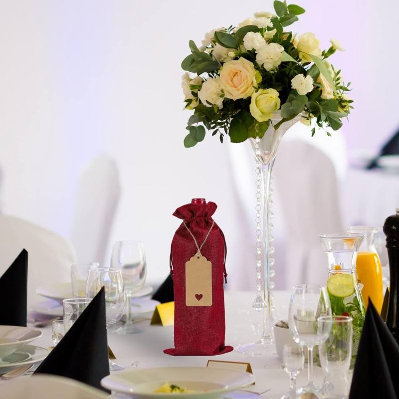 Custom 12-Pack Durable Jute Burlap Fabric Wine Bottle Gift Bag Holder for Christmas and Wedding Home Decorations