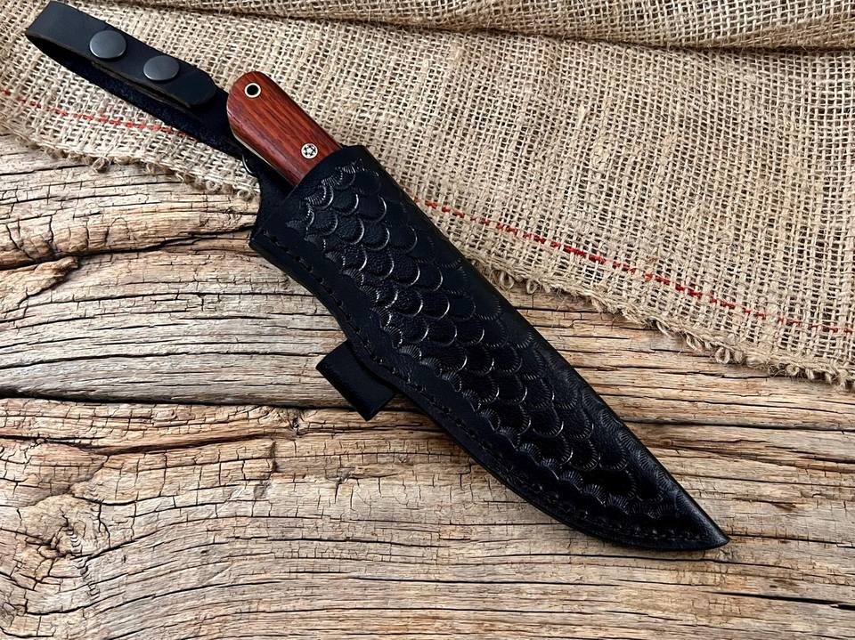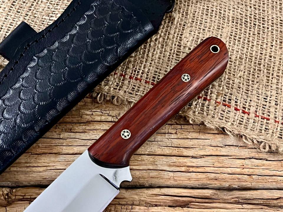 Custom 12c27 Steel EDC Fixed Blade Bushcraft Knife Padouk Wood Handle Leather Sheath OEM Full Tang Hunting & Camping Knife