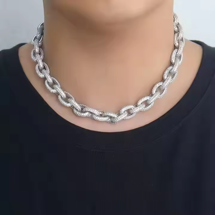 Custom 12mm Unique O Chain Necklace Lab Grown 925 White Gold Men's Fashion Statement Jewelry for Streetwear Boys' Trend