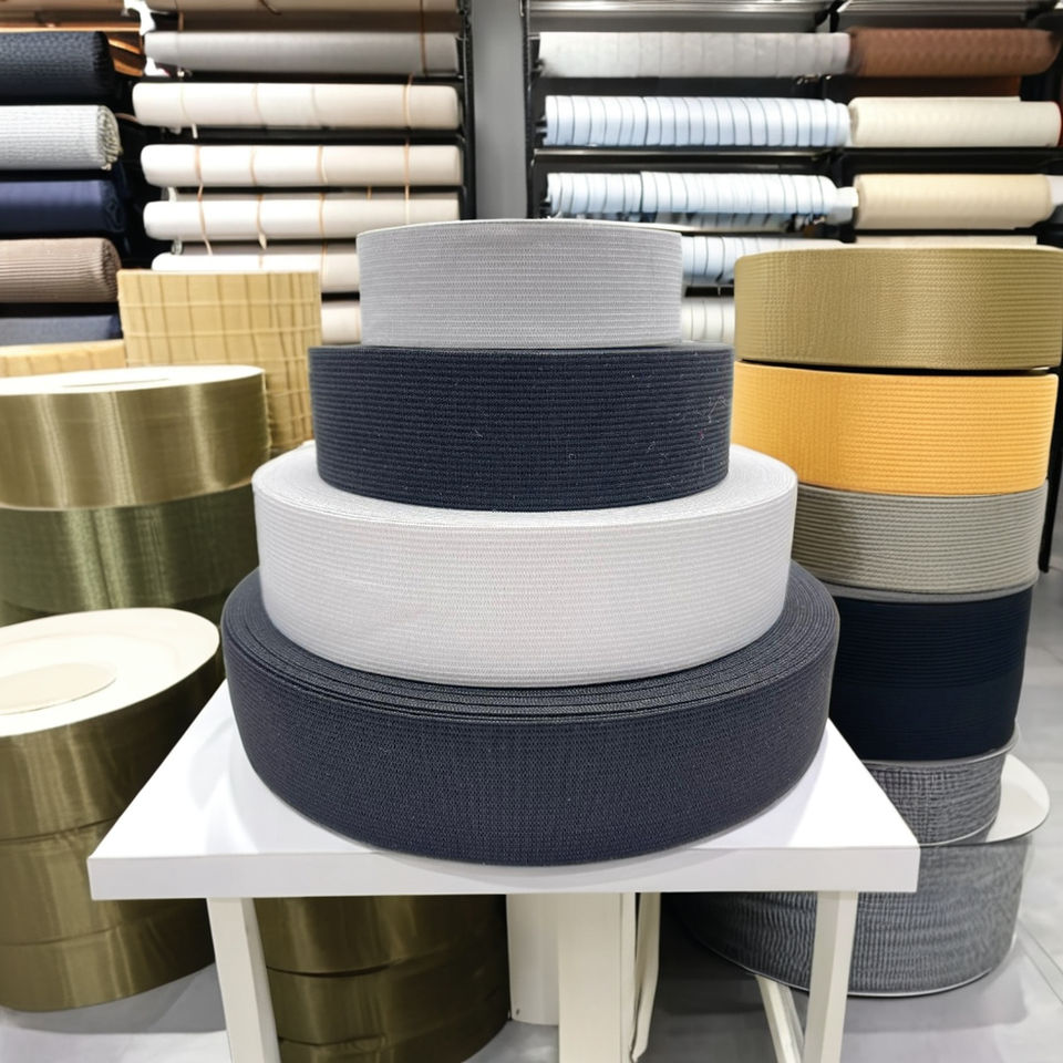 Custom 15mm-60mm Black/White Woven Knitted Skinny Band High Elasticity Braided Webbing 100% Polyester Sustainable Factory