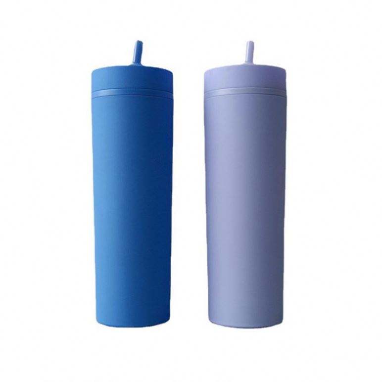 Custom 16Oz Skinny Acrylic Straight Pastel Colored Cups Reusable Plastic Matte Tumblers With Straw