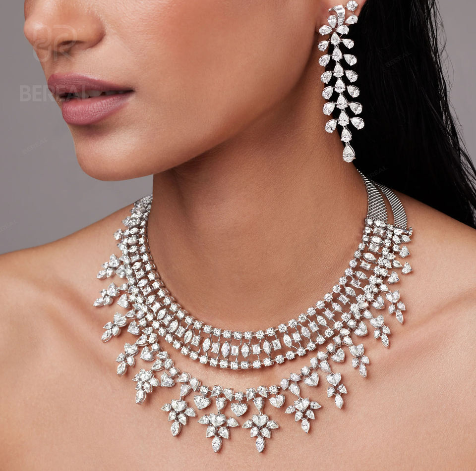 Custom 18K Gold Vvs Moissanite Drop Necklace Earring Bridal Set 925 Silver Lab Grown Moissanite Diamond Chain Women Jewelry