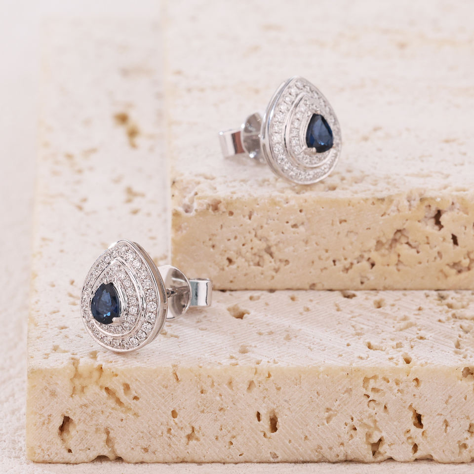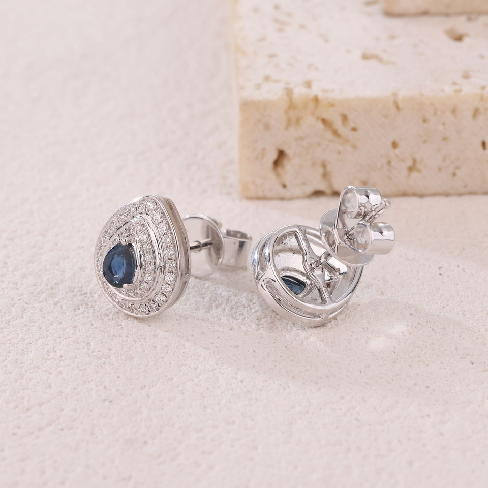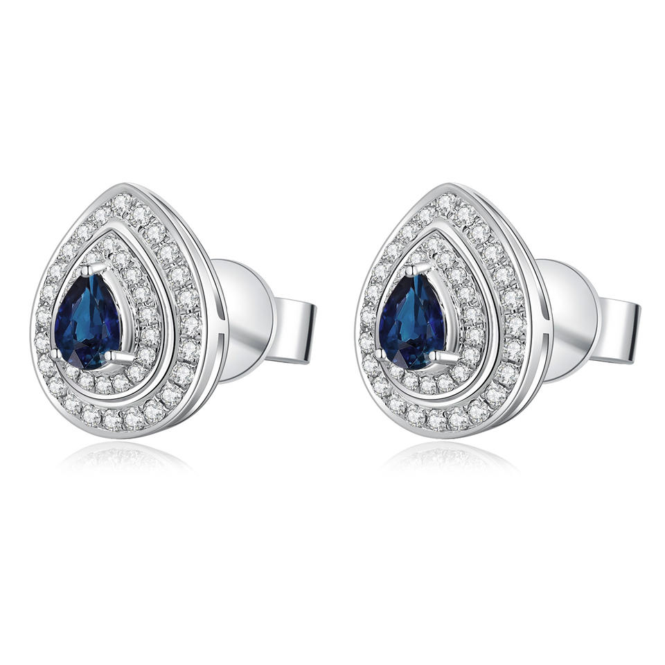 Custom 18K White Gold Stud Earrings Classical Natural Diamond Blue Sapphire for Engagement Wedding Party Promotional Gift Idea
