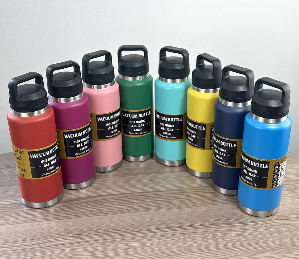 Custom 18oz 26oz 36oz Drinkware Vacuum Flask Stainless Steel Mug Tumbler Wide Mouth Water Bottle With Chug Lid Handle