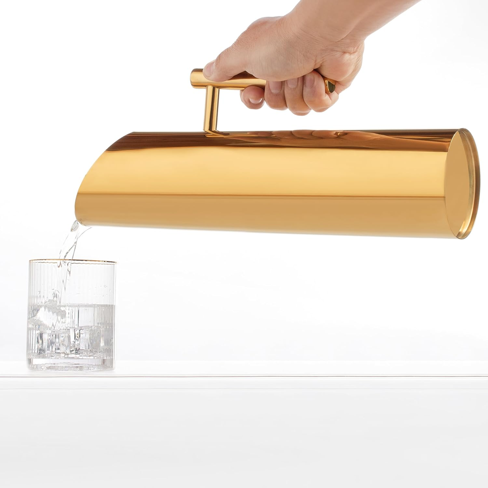 Custom 1L Stainless Steel and Glass Jug Dispenser Set with Slanted Mouth Insulated Wine Bottle for Restaurant Use for Ice Tea