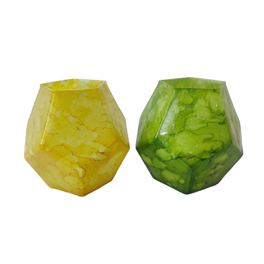 Custom Latest Multi-colored Marbleized High-Quality Handmade Decorative Multi-purpose Large Square Petal Candle Glass Jar Vessel