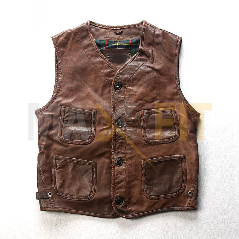 Custom 2024 Super Quality Sheep Leather Vintage Waistcoat for Men MAXFIT ENTERPRISES Top Fabric Winter Vest