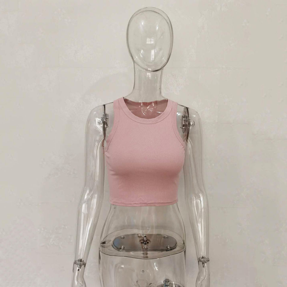 Custom 2025 Hot Sale Cotton Knitted Women Croptop Ribbed Camisole O-Neck Slim Solid tank Top