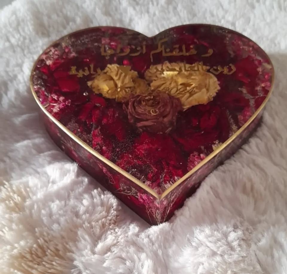 Custom Handmade Love Muslim Wedding Resin Card & Frame with Floral Inlay Perfect Christmas Gift