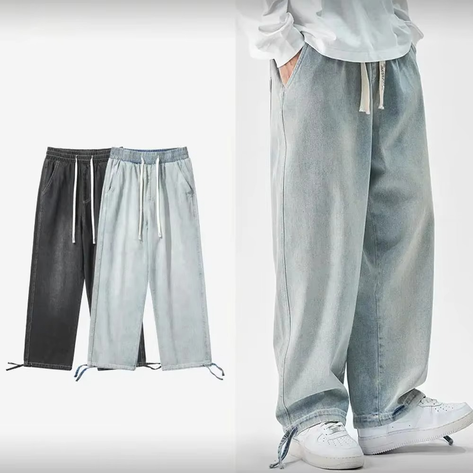 Custom 2025 Plain Baggy Jeans Men's Oversized Jeans Hip Hop Jeans Streetwear Pants Baggy Fare Pants With Two Pockets Comfort