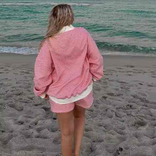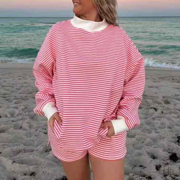Custom 2025 Women's Casual Loose Long-sleeved Dark Pink White Crew Neck Knitted Breathable Eco-Friendly Sweatshirt Autumn Winter