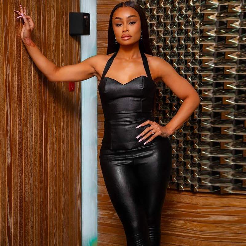 Custom 2026 Women Faux Leather Halter Top And Pants Set Bodycon Club Outfits Natural Waistline Adult Size