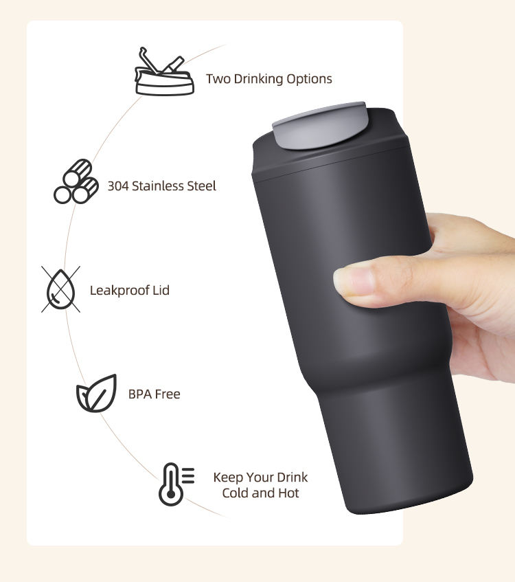 CLASSICO Modern 304 Stainless Steel Insulated Mug 12oz-360ml Capacity Hot & Cold with Lid & Handle Microwave Safe