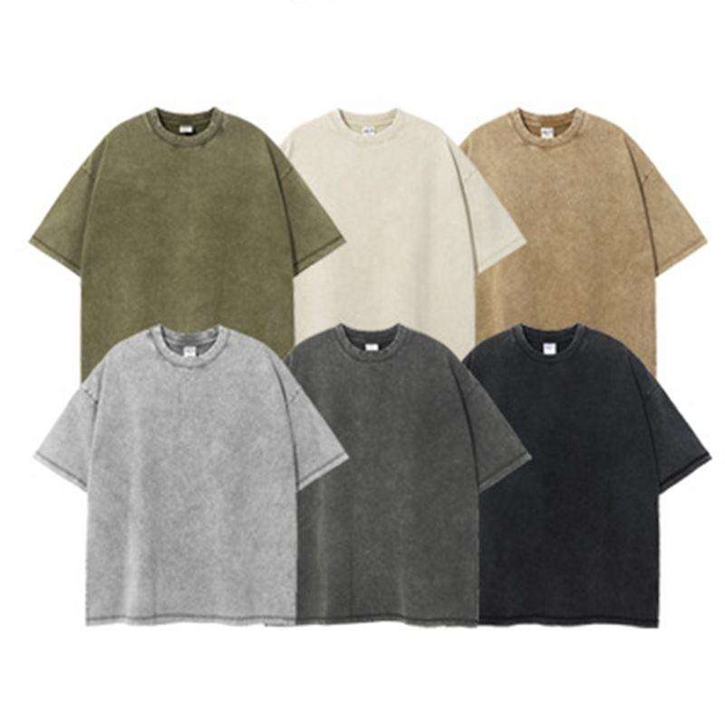 Custom 250gsm 100% Cotton Heavy Weight Acid Washed Oversize Digital Print Demand Solid MOQ 1PC Vantage Oversize T shirt for men