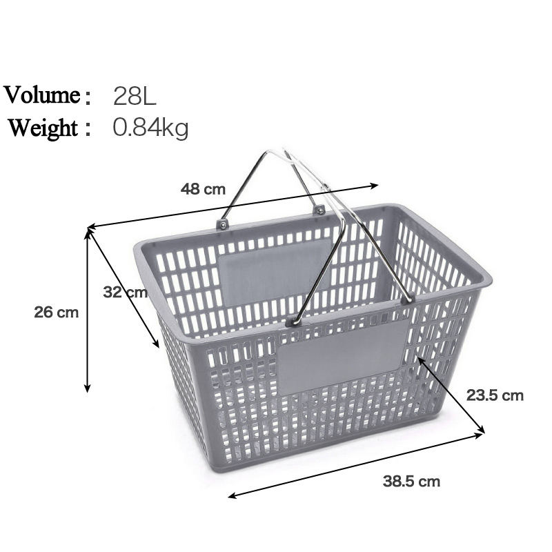 Custom 28L Supermarket Plastic Shopping Baskets with Handles for Retail Stores Shopping Basket Factory Wholesale Portable