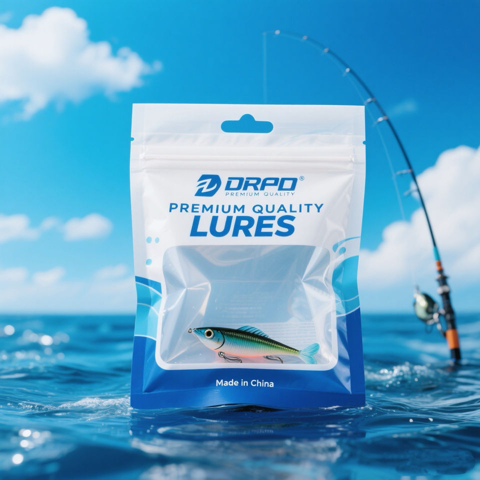 Custom Digital Printed Zipper Bag Small Soft Fishing Lure Plastic Pouch With Clear Window Oil Proof Fish Baits Worm Packaging