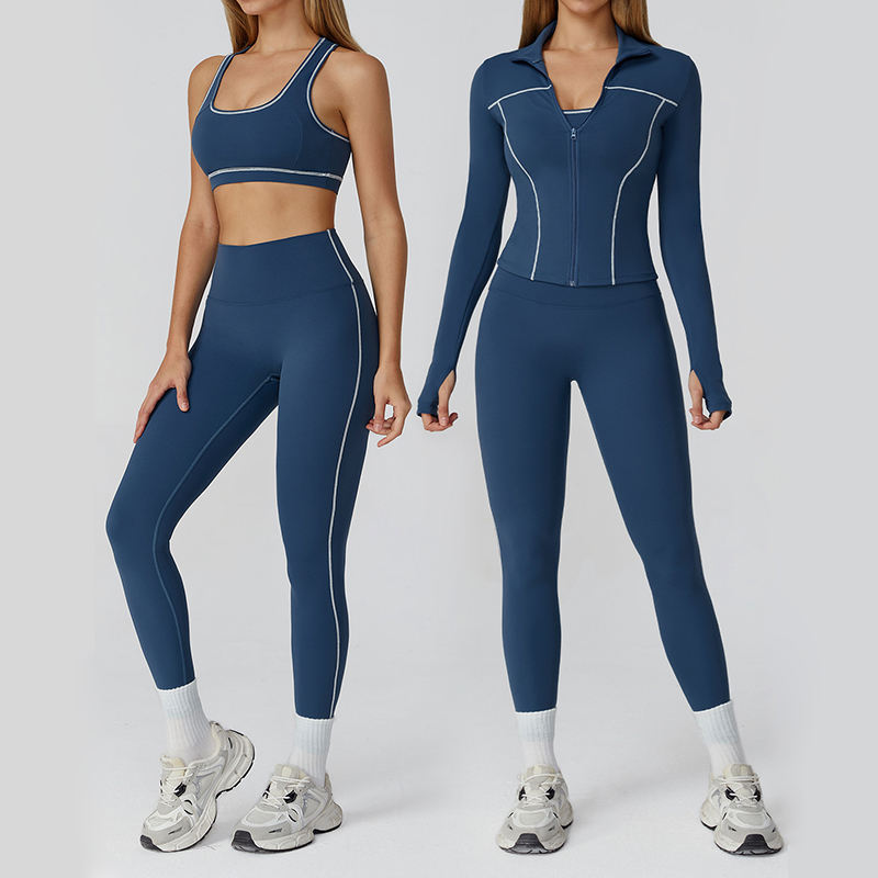 Custom 3 Piece Outdoor Fitness Slim Fit Gym Top Long Sleeves Sports Bra Yoga Full Zipper Jacket Yoga Set for Women