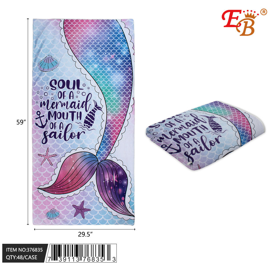Custom 30\" X 60\" MERMAID BEACH TOWEL Luxury Terry Cloth with Sublimation Printing Quick Dry Logo Pattern and Bag 48PCS/CS