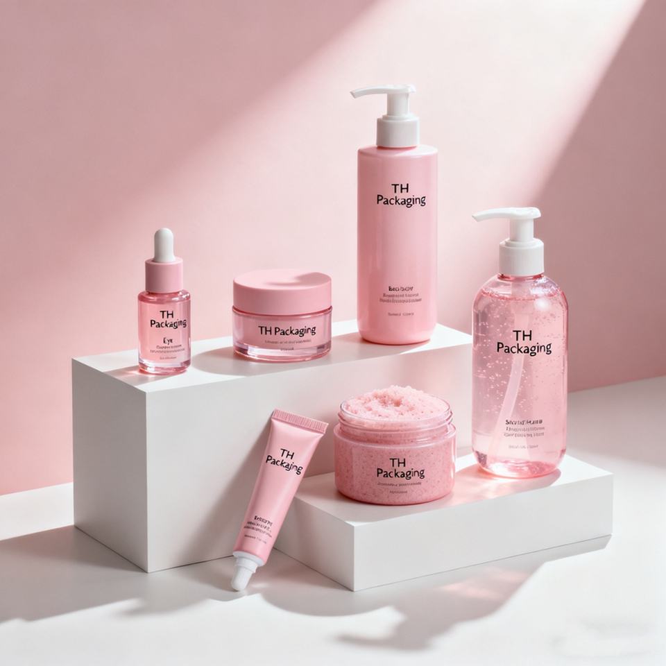Custom 30ml 150ml 200ml 250ml 300 ml Pink Face Cream Scrub Jar Plastic Pet Lotion Cream Skin Care Bottle Set Cosmetic Packaging