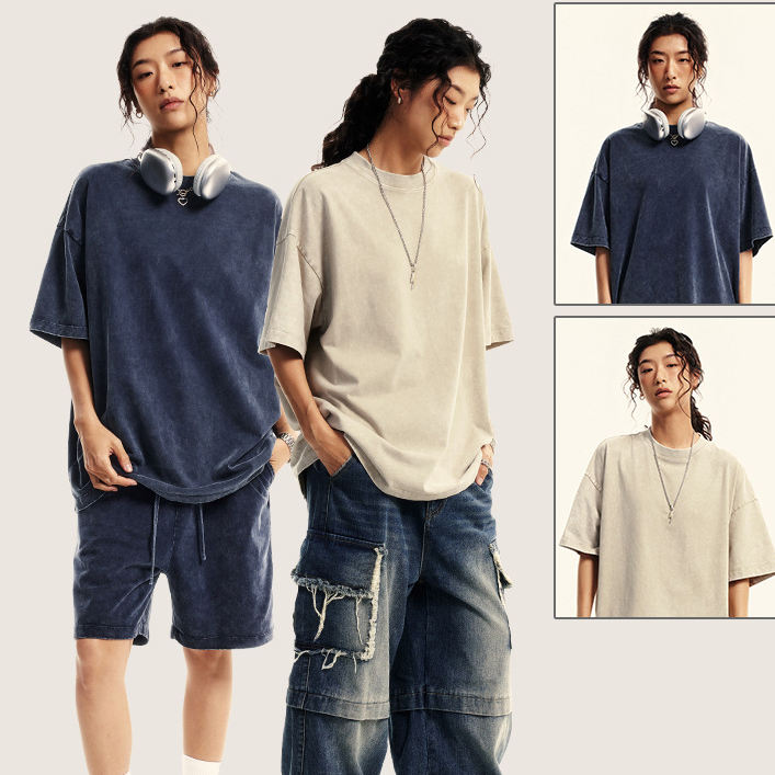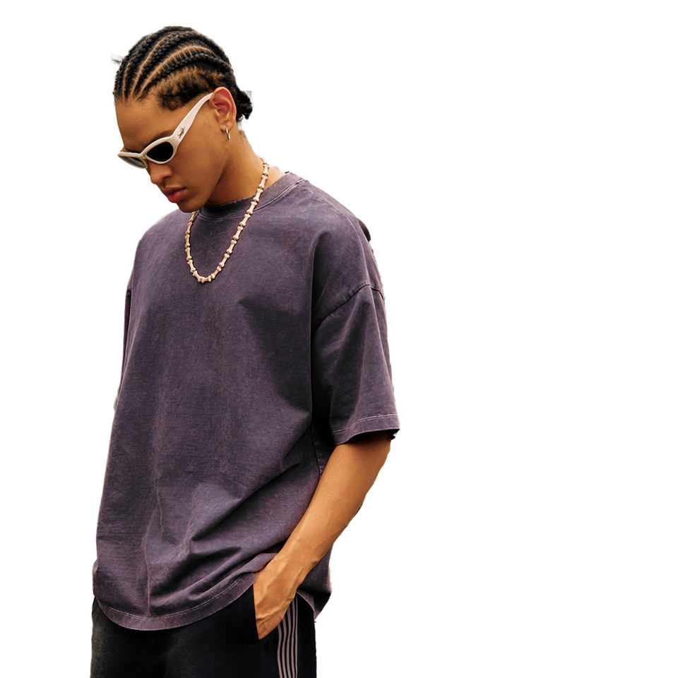 Custom 315gsm Washed 100% Cotton Vintage Knitted T-Shirt Men Personalized Logo Print Tshirt Pre-shrunk Blank Casual T shirt