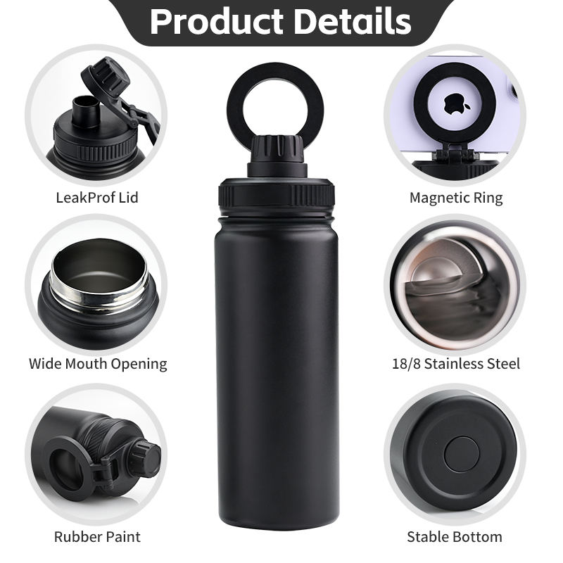 Custom 32 oz Powder Coated Double Wall Vacuum Insulated Stainless Steel Magsafe Magnetic Water Bottle Phone Holder 12-24hr