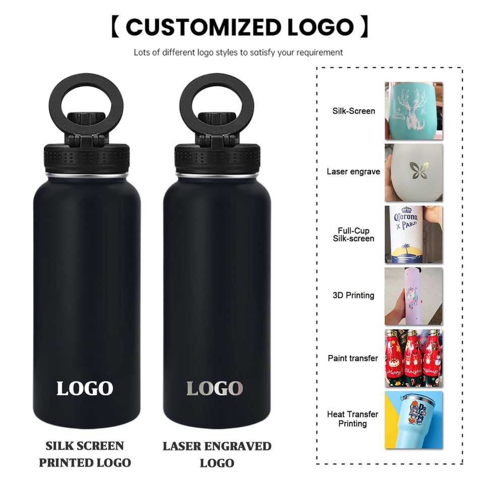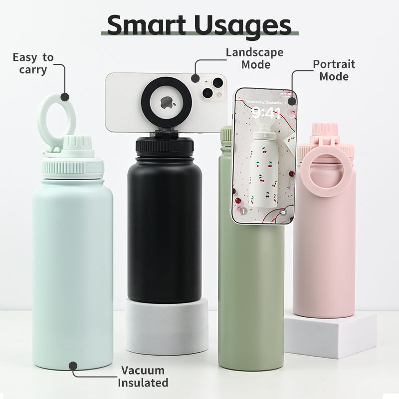 Custom 32 oz Stainless Steel Powder Coated Double Wall Vacuum Insulated Tumbler Water Bottle with Handle and Lid Phone Holder