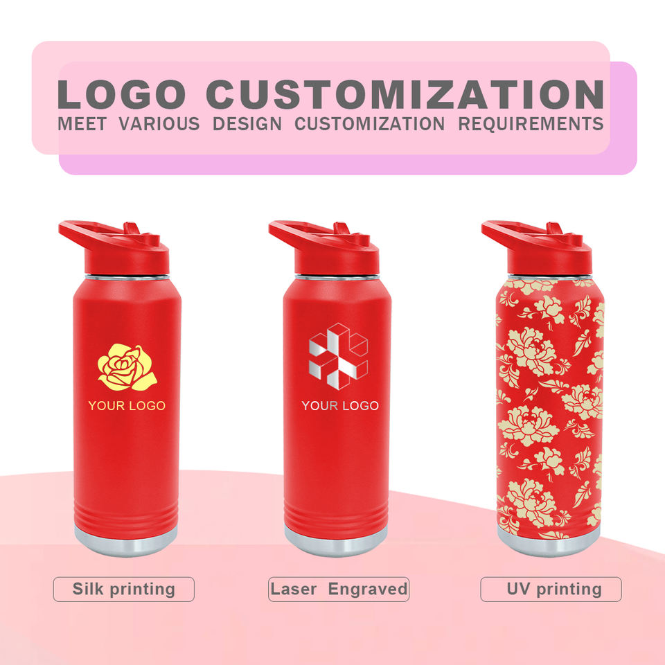 Custom 32oz Stainless Steel Double Wall Vacuum Flask Insulated Sports Water Bottle Hiking Handle Lids Design Travel
