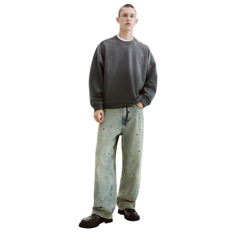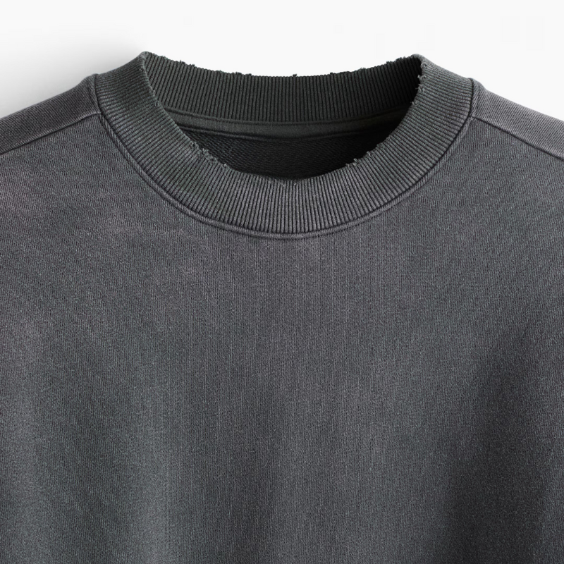 Custom 360gsm Heavyweight Oversized Crewneck Sweatshirt 100% Cotton Unisex Vintage Distressed Embossed Design