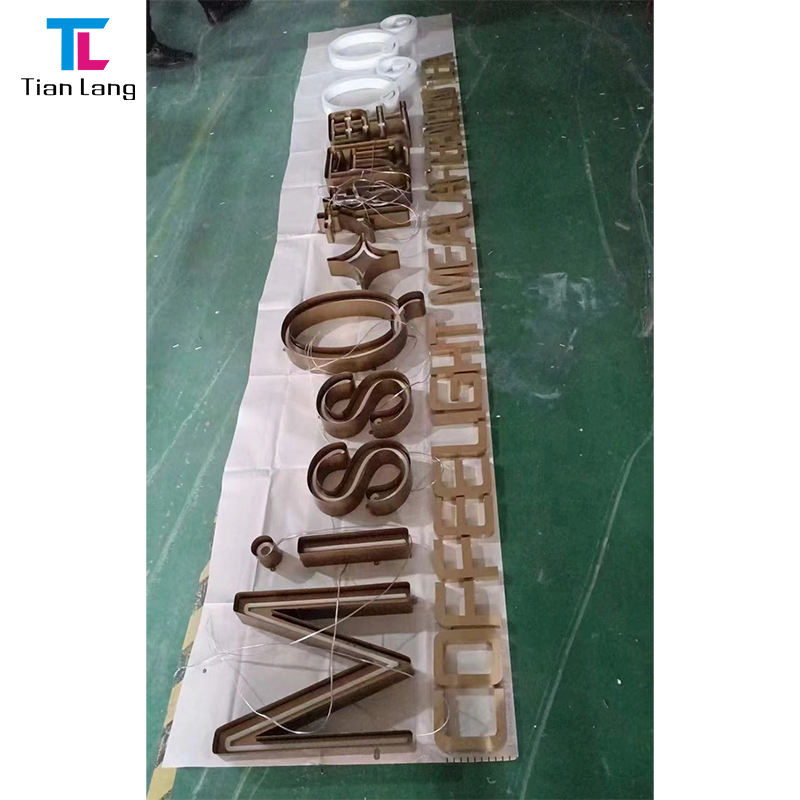 Custom 3D Acrylic Signage with Stainless Steel Brushed Gold Letters LED Illuminated Glass Store Company Wall Logo Sign
