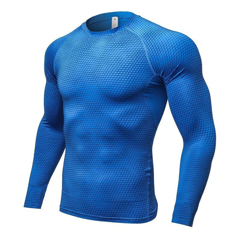 Custom 3D Compression Long Sleeves MMA Rash Guard Breathable Digital Print Spandex/Nylon Custom Design Blue 4 Seasons