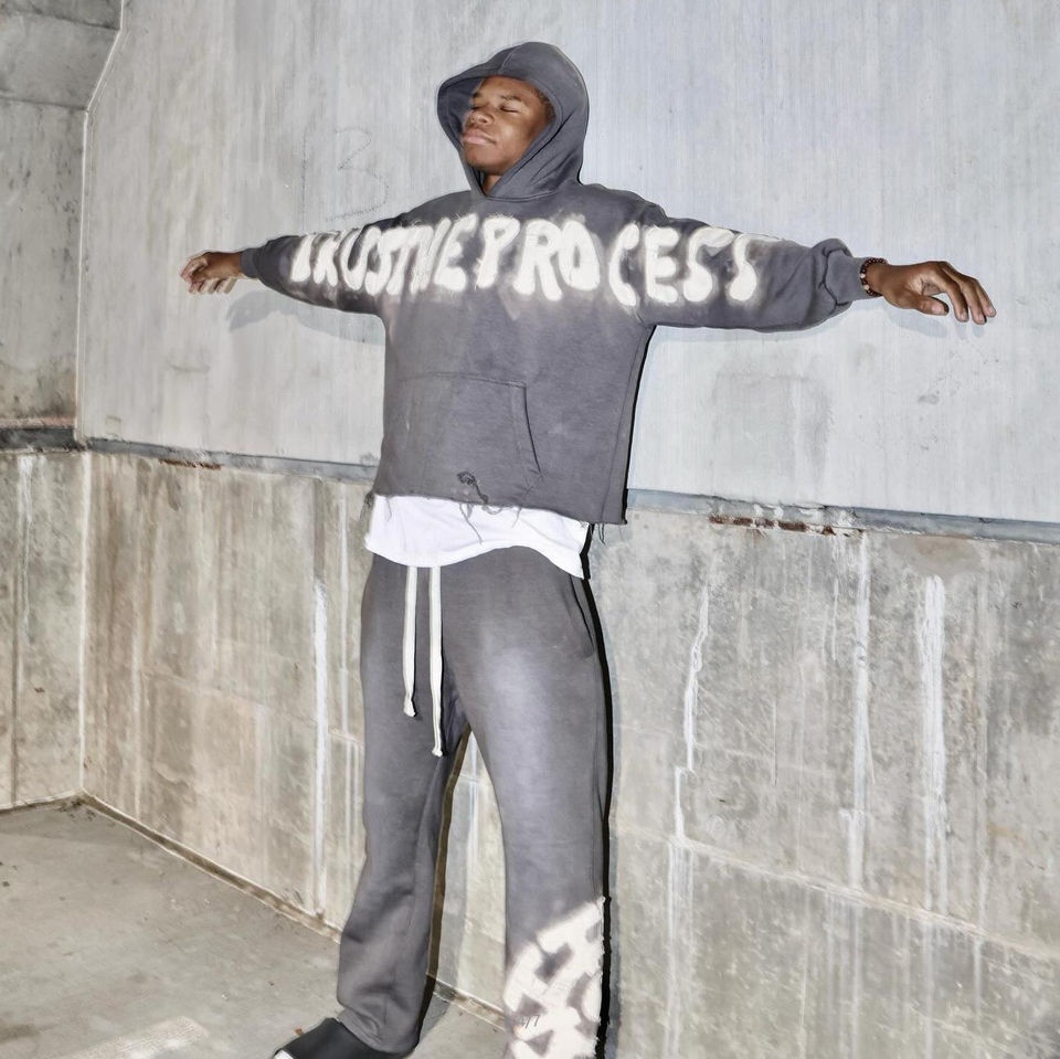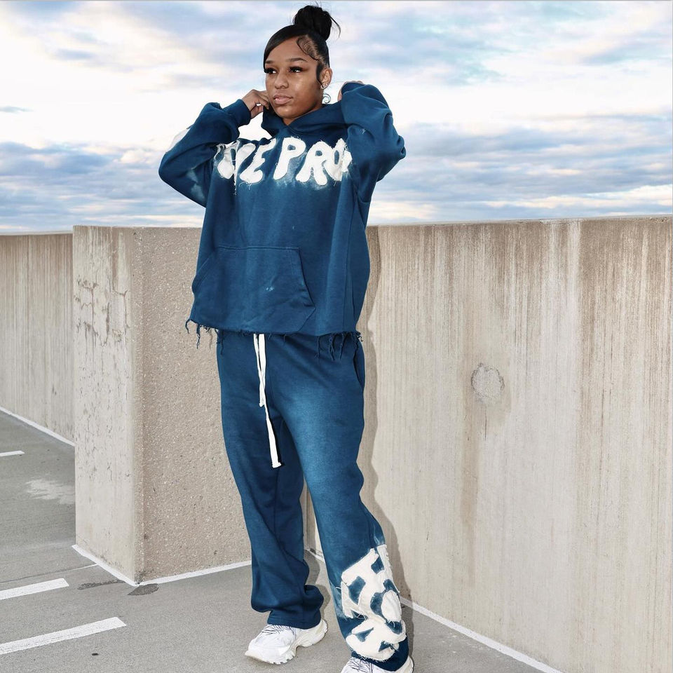 Custom 3D Distressed Embroidery Patch Logo Lined Knitted Eco-Friendly Streetwear Blank Vintage Oversized Two Piece Jogger Set