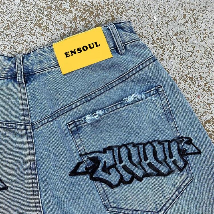 Custom 3D Embossing Logo Retro Wash Raw Hem Cut Edge High Quality HeavyWeight Vintage Jeans Shorts