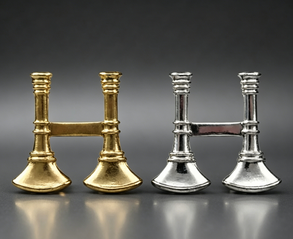 Custom 3D Fire Captain Two Vertical Bugles Cross Shape Metal Badge Gold/Nickel Plated Zinc Alloy Lapel Pin for Souvenir&Uniform