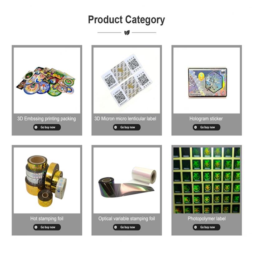 Custom 3D Hot Stamp Holographic Adhesive Label Sticker UV Varnish QR Code with Self-Adhesive Fabric Material Chemical Use