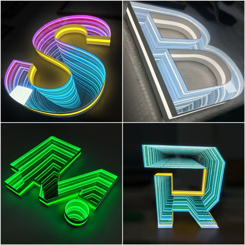 Custom 3D Infinity Mirror Acrylic Letters & Numbers Hotel Sign with 2700K Warm White LED Lighting