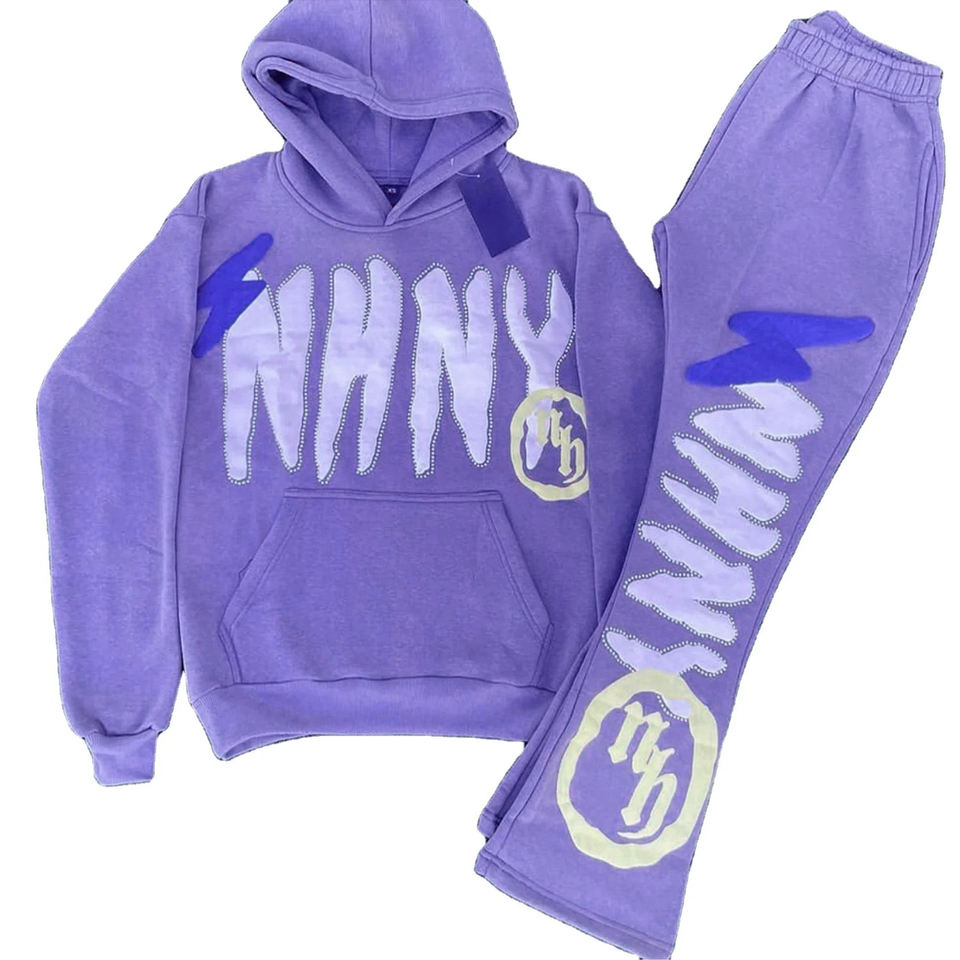 Custom 3D Puff Print Sweatsuits Two Pieces Fleece Tracksuit Set Oversized Cotton Joggers Flared Sweatpants And Hoodie Set Men