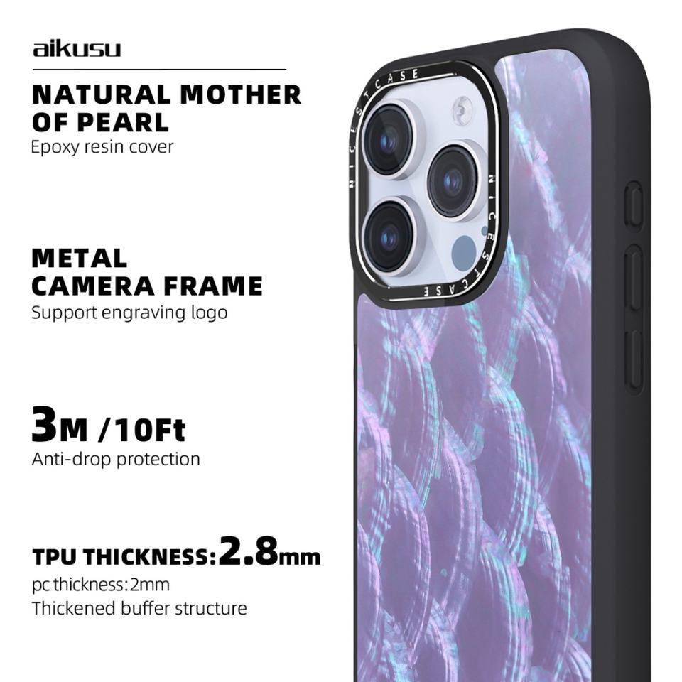 Custom 3M Shockproof Tpu Matte Phone Covers Purple Mother of Pearl Phone Case for Iphone 16 15 14 13 Pro Max