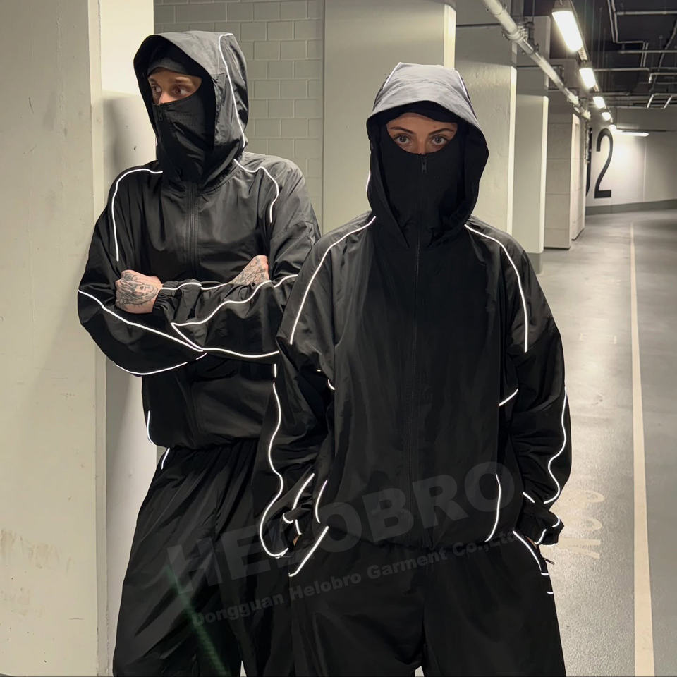 Custom 3m Reflective Zip up Hoodies and Nylon Track Pants Windbreaker Tracksuit Lightweight Jogger Nylon Windcheater Set