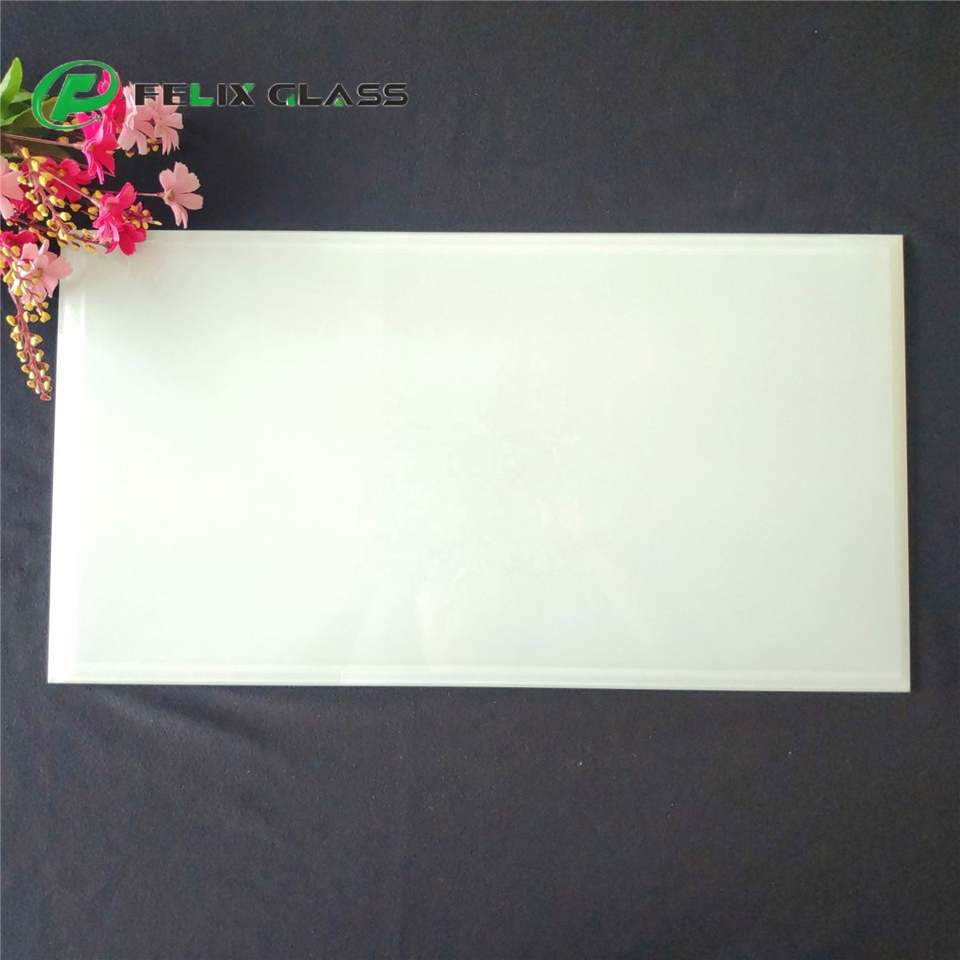 Custom 4mm 5mm 6mm Bevel Edge Milky White Back Painted Tempered Industrial Hotel Lighting Decorative Glass Sheet Factory Cheap