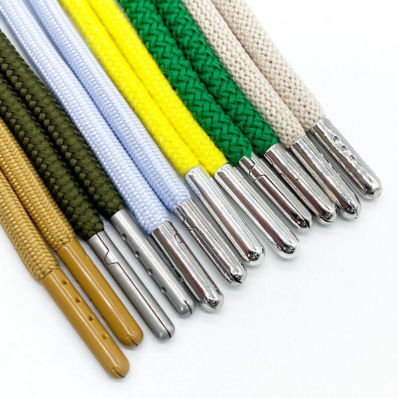 Custom 4mm Cotton Polyester Rope Shoelaces Drawcord Hoodie String Drawstring Cord With Metal Tips for Garment Accessories