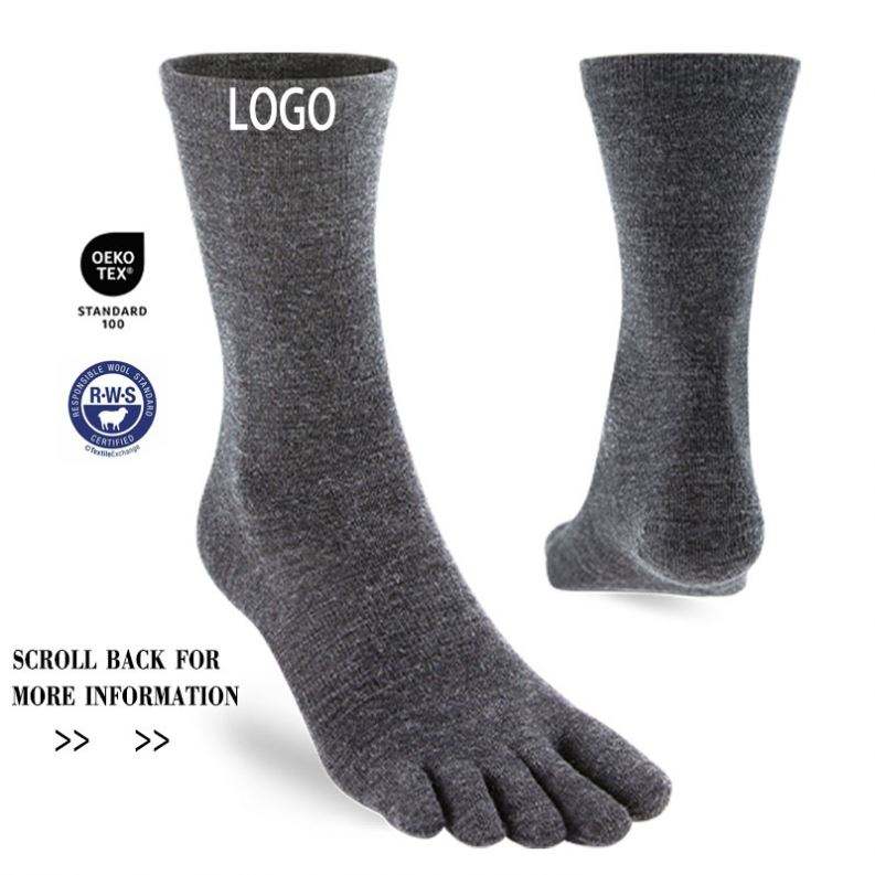 Custom 5 Five Toe Merino Wool Sports Socks Running Cycling Socks for Men Women