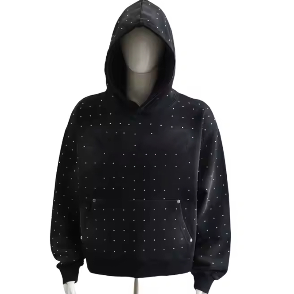 Custom 500gsm Manufacturers Zip up Acid Wash Spider Print Oversize logo Rhinestone Black 1.1 Clothing Hoodie for Men