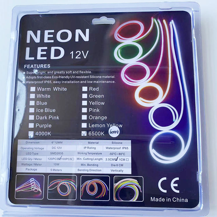 Custom 5m Waterproof IP55 Soft Strip Neon Lights 6mm LED Flexible 110 LEDs/m 12V CRI90 Dimmable Silicone for Hotels