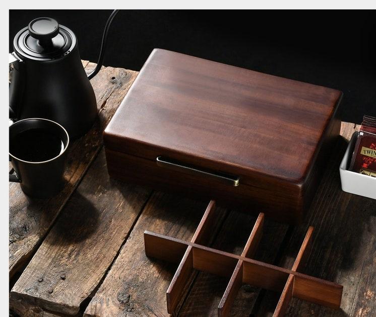Custom 5th Anniversary Wooden Tea Box 8 Slots Storage Organizer with Removable Divider Acacia Organizer Gift